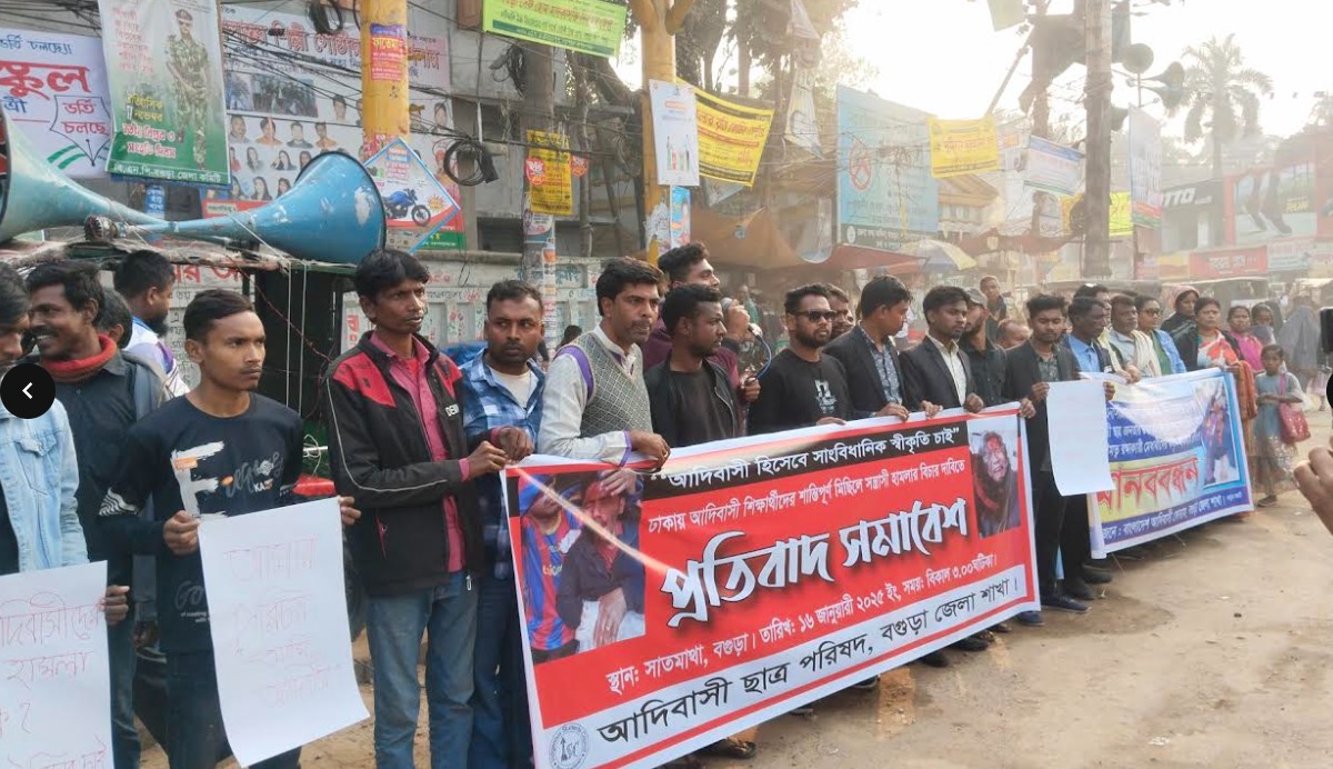 ঢাকায় নবম ও দশম শ্রেণির পাঠ্যপুস্তকে ‘আদিবাসী’ শব্দ সম্বলিত গ্রাফিতি বাতিলের প্রতিবাদ কর্মসূচীতে হামলার ঘটনায় জড়িতদের গ্রেপ্তার ও বিচারের দাবিতে আদিবাসী ছাত্র পরিষদ বগুড়া জেলা শাখার উদ্যোগে সাতমাথায় বিক্ষোভ মিছিল ও প্রতিবাদ সমাবেশ অনুষ্ঠিত হয়েছে।