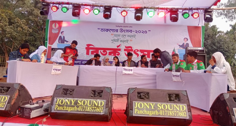 পঞ্চগড়ে বিতর্ক উৎসব অনুষ্ঠিত হয়েছে। এসো দেশ বদলাই পৃথিবীব বদলাই-স্লোগানে নতুন বাংলাদেশ গড়ার