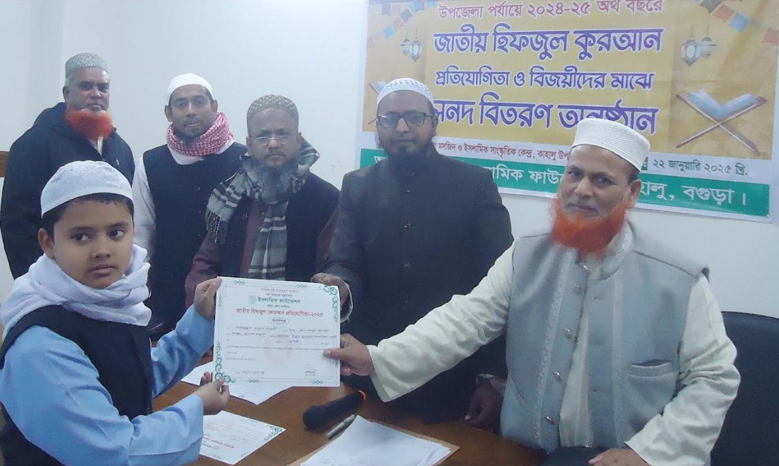 কাহালুতে জাতীয় হিফজুল কুরআন প্রতিযোগিতার সনদ বিতরণ
