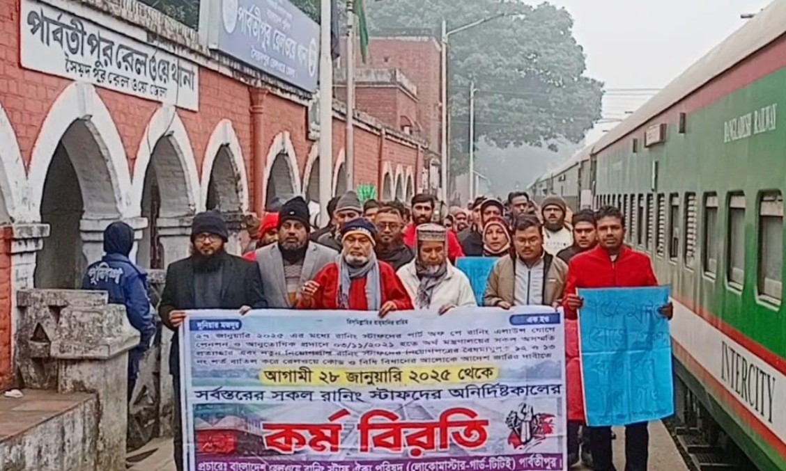 পার্বতীপুরে রেলওয়ে রানিং স্টাফের বিক্ষোভ