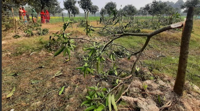 নওগাঁর পোরশায় বৃদ্ধার আম বাগান ফেলেছে দুবৃর্ত্তরা