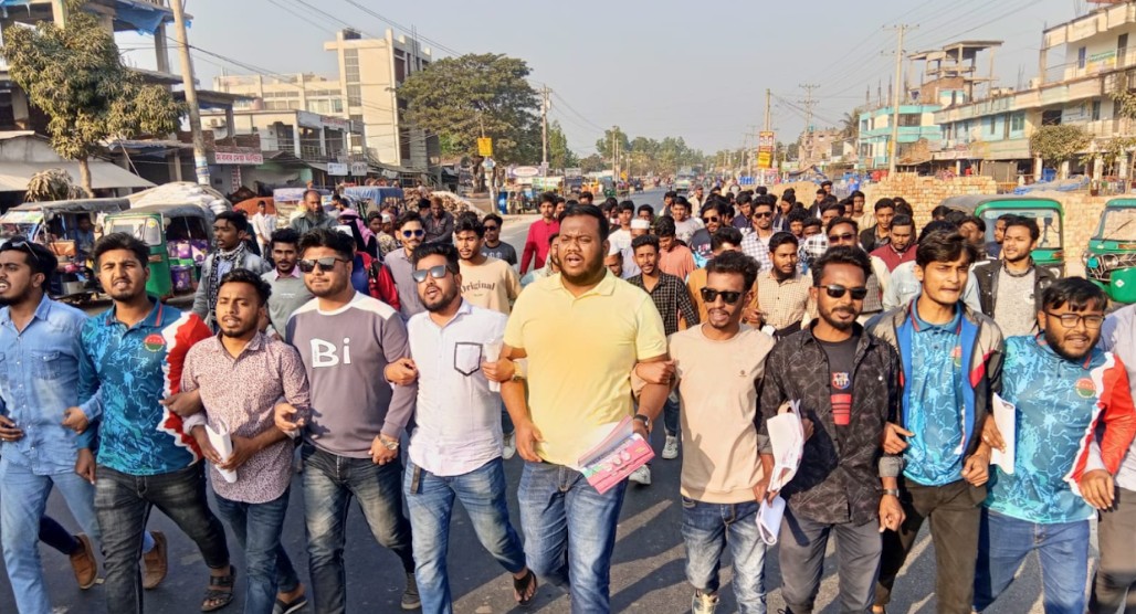 নিষিদ্ধ সংগঠন ছাত্রলীগের কর্মসূচীর প্রতিবাদে নন্দীগ্রামে ছাত্রদলের বিক্ষোভ মিছিল