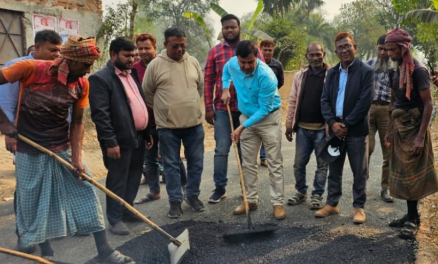নন্দীগ্রামে রাস্তার কার্পেটিং কাজের উদ্বোধন করলেন সাবেক এমপি মোশাররফ