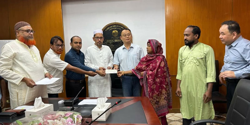 পার্বতীপুরের বড়পুকুরিয়া কয়লা খনিতে মৃত্যু জনিত আর্থিক অনুদানের চেক বিতরণ