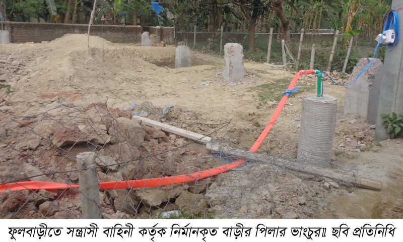 ফুলবাড়ীতে সন্ত্রাসী বাহিনী কর্তৃক নির্মানকৃত বাড়ীর পিলার ভাংচুর॥