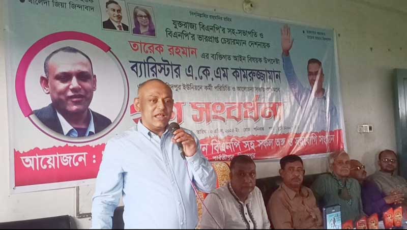 পার্বতীপুরে যুক্তরাষ্ট্র বিএনপির সহ-সভাপতি ব্যারিস্টার একেএম কামরুজ্জানকে গন সংবর্ধনা