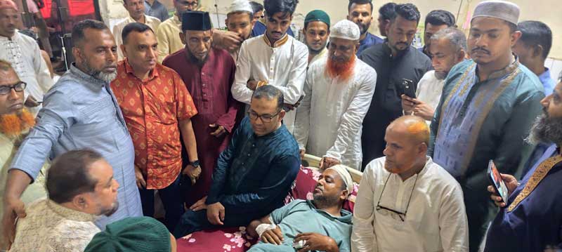 আ.লীগের নেতাকর্মিদের হামলার শিকার বিএনপি নেতার শয্যা পাশে ব্যারিস্টার সায়েম