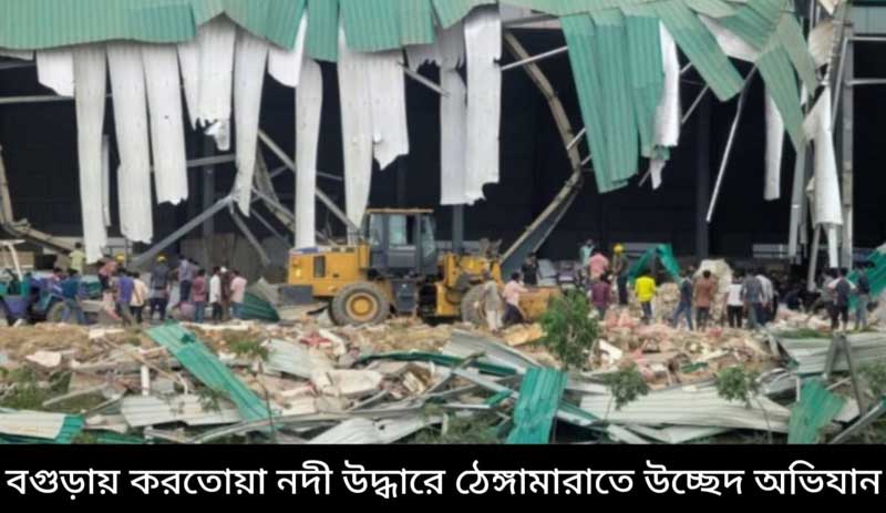বগুড়ায় করতোয়া নদী উদ্ধারে ঠেঙ্গামারাতে উচ্ছেদ অভিযান