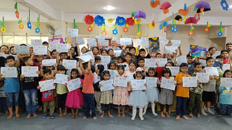 তিনি ব্যক্তিগতভাবে শিক্ষার্থীদের আঁকা চিত্রকর্মগুলো দেখেন, তাদেরকে ভবিষ্যতেও এ ধরনের সৃজনশীল কর্মকাণ্ডে সম্পৃক্ত থাকার জন্য উৎসাহ প্রদান করেন এবং অংশগ্রহণকারী সকল শিক্ষার্থীকে প্রশংসাপত্র প্রদান করেন।