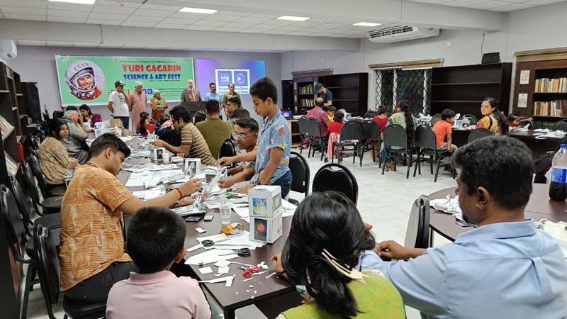 ঢাকাস্থ রাশিয়ান হাউসে অনুষ্ঠিত গ্যাগারিন বিজ্ঞান ও শিল্প উৎসবের তৃতীয় দিনে মহাকাশ বিজ্ঞানের ক্ষেত্রে সৃজনশীলতা ও উদ্ভাবন উদযাপনের জন্য একটি আকর্ষণীয় রকেট মডেল তৈরী প্রতিযোগিতা অনুষ্ঠিত হয়েছে যেখানে সম্ভাবনাময় আগামীর জানান দিয়ে অংশ নেন শিশু কিশোর থেকে শুরু করে নবীন প্রবীণ অনেকেই।