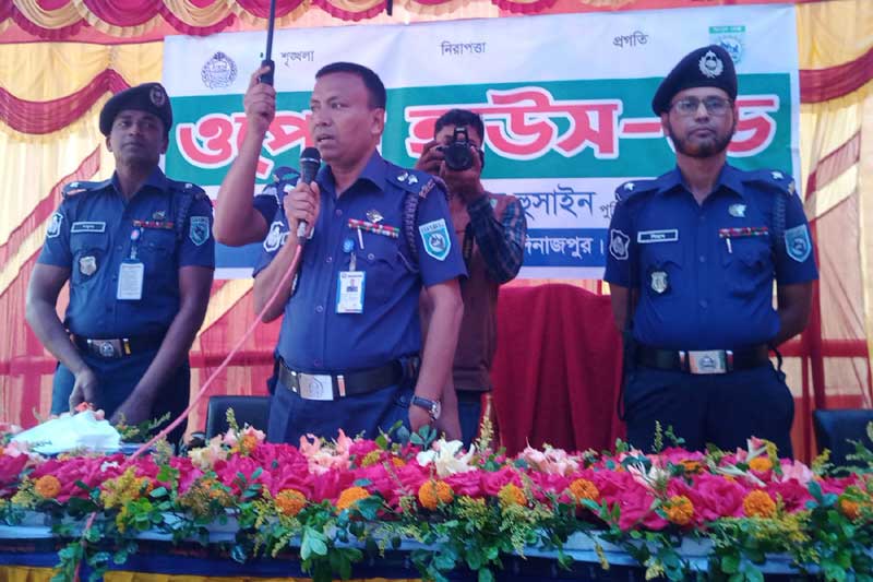 দিনাজপুরের বীরগঞ্জ থানার আয়োজনে ওপেন হাউজ ডে অনুষ্ঠানে দিনাজপুর জেলা পুলিশ সুপার তুমুল বৃষ্টি উপেক্ষা করে মঞ্চে ছাতা নিয়ে দাঁড়িয়ে তার প্রধান অতিথি হিসাবে বক্তব্যে বলেন- মাদক ও জুয়া বিষয়ে কোন আপোষ নেই।