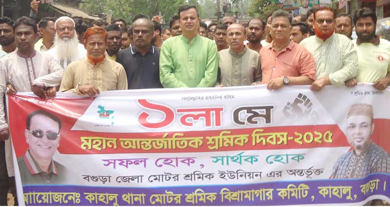 আন্তর্জাতিক শ্রমিক দিবস উপলক্ষ্যে বগুড়ার কাহালু থানা মোটর শ্রমিক বিশ্রামাগার কমিটি ও কাহালু উপজেলা গৃহ নির্মাণ উপ-পরিষদের উদ্যোগে পৃথক পৃথক ভাবে বর্ণাঢ্য র্যালী ও আলোচনা সভা অনুষ্ঠিত হয়।