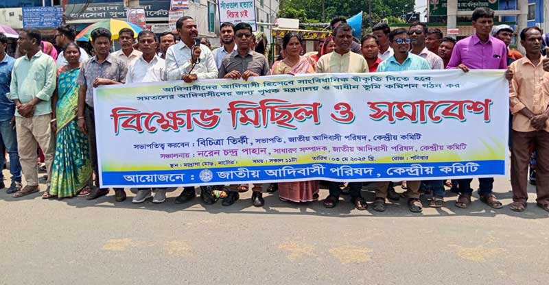 আদিবাসীদের আদিবাসী হিসেবে সাংবিধানিক স্বীকৃতি প্রদান, সমতলের আদিবাসী জন্য পৃথক মন্ত্রণালয় ও স্বাধীন ভূমি কমিশন গঠন, আসন্ন জাতীয় বাজেটে আদিবাসীদের উন্নয়ন জন্য বাজেটে বরাদ্দ বৃদ্ধিসহ বিভিন্ন দাবিতে নাটোরে বিক্ষোভ মিছিল ও সমাবেশ অনুষ্ঠিত হয়েছে।