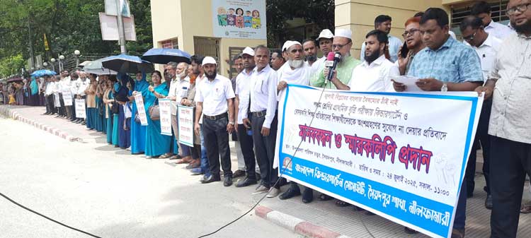 সৈয়দপুরে কিন্ডারগার্টেন সোসাইটির মানববন্ধন ও স্মারকলিপি প্রদান