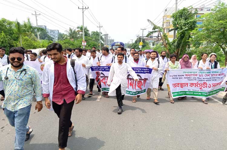 দিনাজপুর মেডিকেল কলেজ অধ্যক্ষের বিরুদ্ধে মিথ্যা অপপ্রচারের প্রতিবাদে শিক্ষার্থীদের বিক্ষোভ
