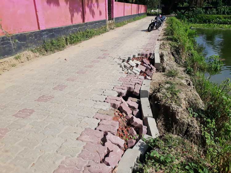 আত্রাইয়ে নির্মাণ কাজ শেষ না হতেই সড়কে ধস