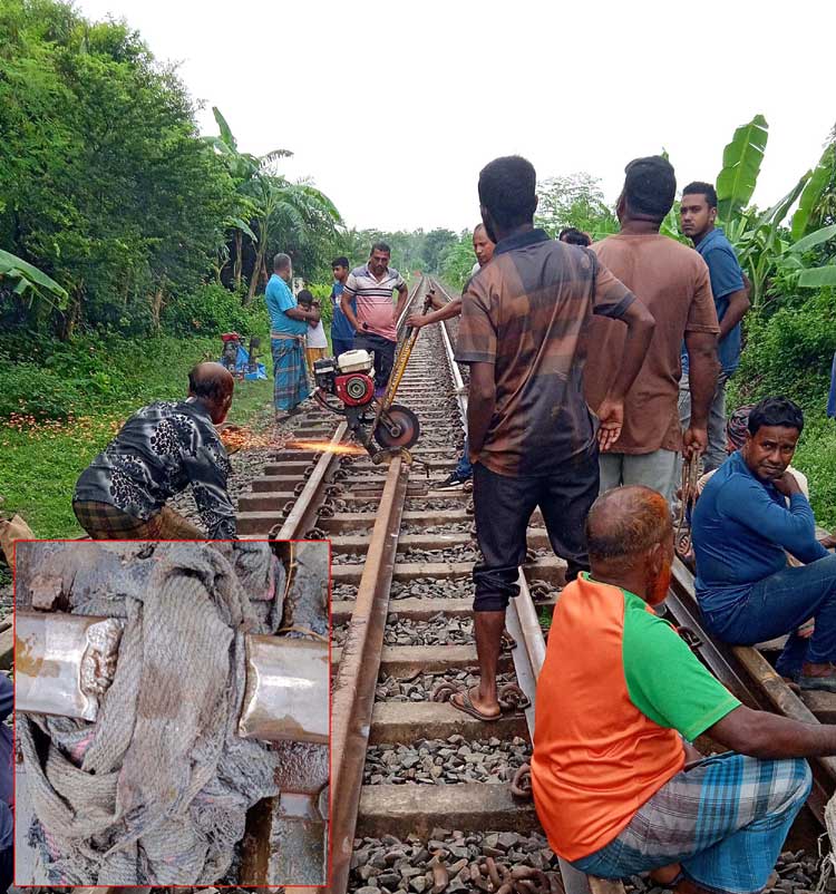 আদমদীঘিতে ভাঙা রেললাইনে কম্বল গুঁজে ১৮ ঘন্টা ট্রেন চলাচল