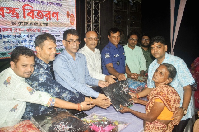 বগুড়ায় মহাষষ্ঠীতে দূর্জয় ক্লাবের উদ্যোগে বস্ত্র বিতরণ