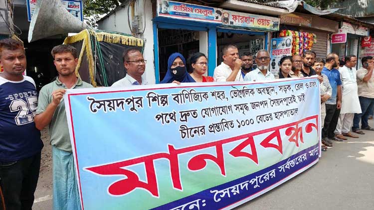 চীনের প্রস্তাবিত হাসপাতাল সৈয়দপুরে স্থাপনের দাবিতে মানববন্ধন