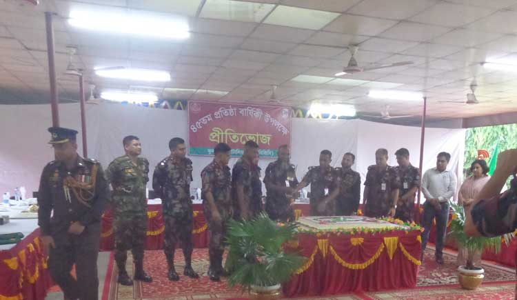 দিনাজপুরের ফুলবাড়ী বিজিবি ২৯ বিজিবি’র ৪৫তম প্রতিষ্ঠা বার্ষিকী কেক কেটে পালিত হয়। গতকাল রবিবার ফুলবাড়ী ২৯ বিজিবি’র সদর দপ্তরে সীমান্ত রক্ষা, অভ্যন্তরীণ আইন-শৃঙ্খলা কর্তব্যপালন এবং অপারেশনাল ও প্রশাসনিক কর্মকান্ডের শত ব্যস্ততার মাঝেও অন্যান্য বছরের ন্যায় এ বছরও ০৫ অক্টোবর ২০২৫ তারিখ ফুলবাড়ী ব্যাটালিয়ন (২৯ বিজিবি) এর ৪৫তম প্রতিষ্ঠা বার্ষিকী বিপুল উৎসাহ, উদ্দীপনা এবং আনন্দমুখর পরিবেশে পালিত হয়েছে। উল্লেখিত প্রতিষ্ঠা বার্ষিকীর অনুষ্ঠানে প্রধান অতিথি হিসেবে উপস্থিত থেকে আসন অলংকৃত করেছিলেন রিজিয়ন কমান্ডার, রিজিয়ন সদর দপ্তর, রংপুর আরোও উপস্থিত ছিলেন সেক্টর সদর দপ্তর, দিনাজপুর, অধিনায়ক ফুলবাড়ী ব্যাটালিয়ন (২৯ বিজিবি), অধিনায়ক, জয়পুরহাট ব্যাটালিয়ন (২০ বিজিবি), অধিনায়ক, দিনাজপুর ব্যাটালিয়ন (৪২ বিজিবি) এবং অন্যান্য অফিসারবৃন্দ ও স্থানীয় প্রশাসনের কর্মকর্তা ও অন্যান্য অতিথিবৃন্দ। এছাড়াও ফুলবাড়ী ব্যাটালিয়ন (২৯ বিজিবি) এর সকল জুনিয়র কর্মকর্তা, অন্যান্য পদবীর সৈনিকবৃন্দ ও অসামরিক কর্মচারীবৃন্দ উপস্থিত ছিলেন। অনুষ্ঠানটি পরিচালনায় ছিলেন, ফুলবাড়ী ২৯ বিজিবি, লেঃ কর্নেল এ এম জাবরে বনি জব্বার, পরিচালক, অধিনায়ক।