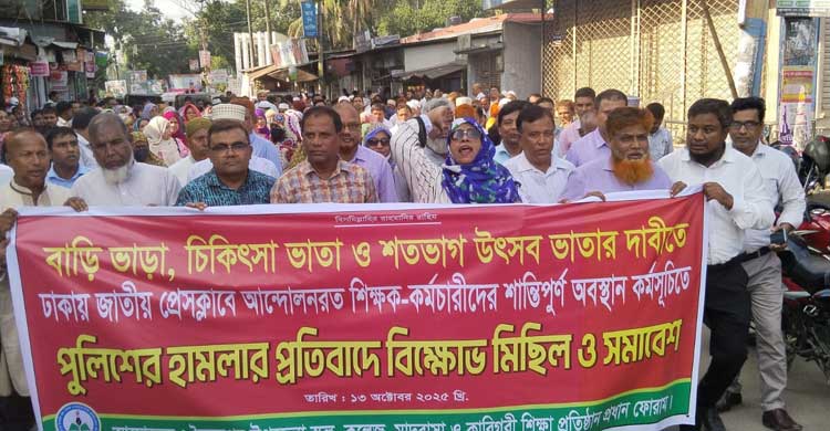 বিক্ষোভ সমাবেশে বক্তারা বাড়ি ভাড়া, চিকিৎসা ভাতা ও শতভাগ উৎসব ভাতার দাবিতে ঢাকায় জাতীয় প্রেস ক্লাবে অন্দোলনরত শিক্ষক-কর্মচারীদের শান্তিপূর্ণ অবস্থান কর্মসূচিতে পুলিশের হামলার তীব্র নিন্দা ও ক্ষোভ প্রকাশ করেন। তারা বলেন, শিক্ষাই জাতির মেরুদন্ড। আর এ শিক্ষকরাই জাতিকে শিক্ষিত করে গড়ে তুলছেন। পিতামাতার পরেই শিক্ষকের স্থান। অথচ এ দেশের শিক্ষক সমাজ নানাভাবে বঞ্চনার শিকার আজ। তারা প্রতিনিয়ত বিভিন্নভাবে অবহেলিত, বঞ্চিত ও উপহাসের শিকার হচ্ছে। গত রোববার ঢাকায় জাতীয় প্রেস ক্লাবের সামনে শিক্ষক-কর্মচারীদের ন্যায্য দাবি আদায়ের শান্তিপূর্ণ কর্মসূচিতে দেশের পুলিশবাহিনী বর্বরোচিত ও ন্যাক্কারজনক হামলা ও নির্যাতন করেছে। এতে বেশ কিছু সংখ্যক শিক্ষক আহত হন। পুলিশ শিক্ষকদের ওপর চড়াও হয়ে মারপিট করে আহত করার ঘটনা কোন ক্রমেই মেনে নেওয়ার মতো ঘটনা নয়। এটি যেমন শিক্ষক সমাজের জন্য চরম অপমানজনক ঘটনা তেমনি জাতির জন্য লজ্জাজনক।