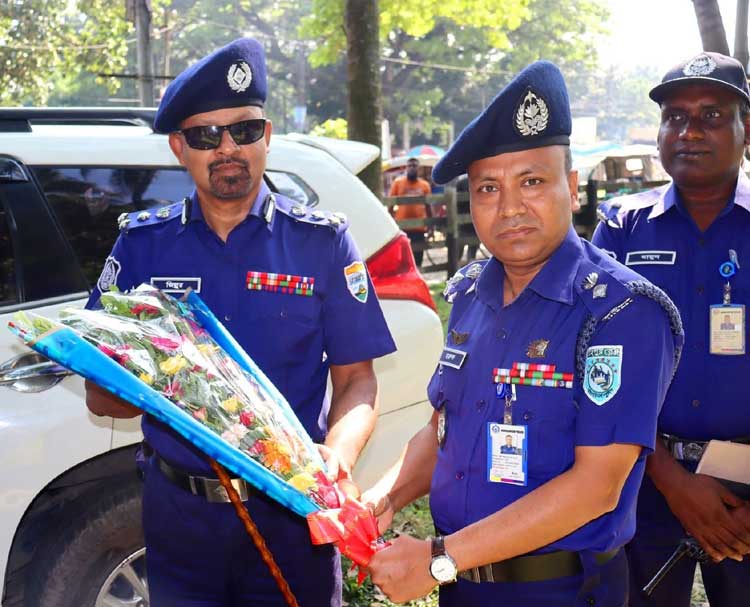পার্বতীপুর রেলওয়ে থানা পরিদর্শনকালে রেলওয়ে পুলিশের প্রধানকে দিনাজপুর জেলা পুলিশের পক্ষ থেকে ফুলেল শুভেচ্ছা ও সম্মাননা স্মারক প্রদান করেন দিনাজপুর জেলার পুলিশ সুপার মোঃ মারুফাত হুসাইন । এ সময় উপস্থিত ছিলেন সৈয়দপুর রেলওয়ে জেলা পুলিশের পুলিশ সুপার (অতিরিক্ত ডিআইজি) মোঃ ফারহাদ আহমেদ।