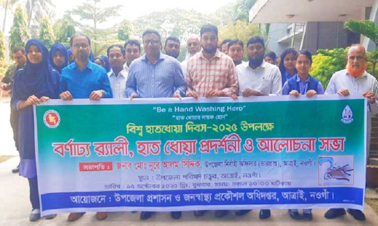 "হাত ধোয়ার নায়ক হোন" এই প্রতিপাদ্যকে সামনে রেখে নওগাঁর আত্রাইয়ে বিশ্ব হাত ধোয়া দিবস ২০২৫ পালিত হয়েছে।