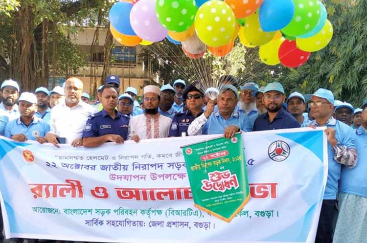 ‘মানসম্মত হেলমেট ও নিরাপদ গতি, কমাবে জীবন ও সম্পদের ক্ষতি’—এই প্রতিপাদ্যে বগুড়ায় উদযাপিত হয়েছে জাতীয় নিরাপদ সড়ক দিবস। দিবসটি উপলক্ষে বুধবার সকাল সাড়ে ৯টার দিকে বিআরটিএ বগুড়া সার্কেলের আয়োজনে র্যালি ও আলোচনা সভা অনুষ্ঠিত হয়। জেলা প্রশাসক চত্বরের বটতলা থেকে র্যালিটি শুরু হয়ে শহরের প্রধান সড়ক প্রদক্ষিণ করে। পরে জেলা প্রশাসকের সভাকক্ষে দিবসটিকে ঘিরে আলোচনা সভা অনুষ্ঠিত হয়।