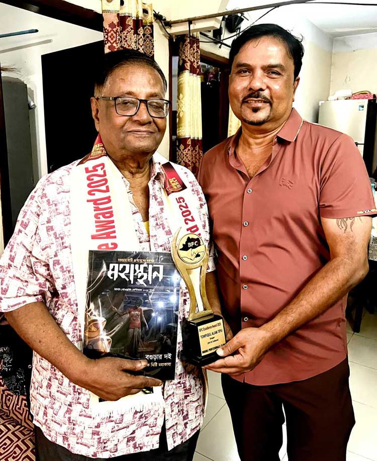 পরবর্তীতে বগুড়ায় ফিরে রবিবার বিপিসির পক্ষে এক্সিলেন্স অ্যাওয়ার্ড ও উত্তরীয় আনুষ্ঠানিকভাবে টিপুর হাতে তুলে দেন।