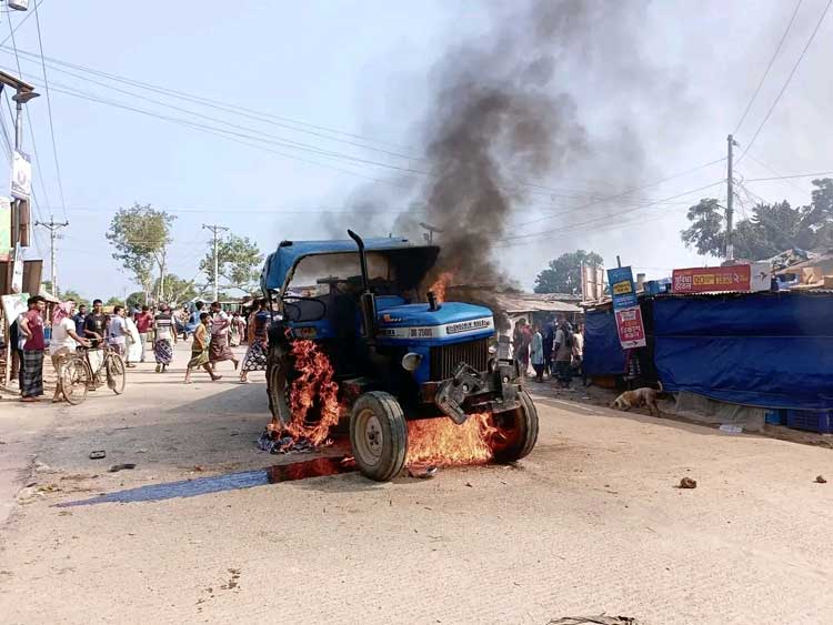 এ ঘটনায় স্থানীয় বিক্ষুব্ধ জনতা ট্রাক্টরটি আগুন দিয়ে পুড়িয়ে দেয়।