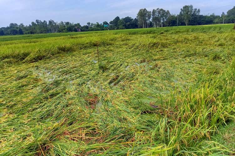 বঙ্গপোসাগরের সৃষ্টি লঘুচাপের প্রভাবে বগুড়ার আদমদীঘিতে বৃষ্টি ও ঝড়হাওয়ার কারণে উঠতি আমন ফসলের ব্যাপক ক্ষতি হয়েছে। গত বুধবার (২৯ অক্টোবর) রাতে উপজেলার বহুসংখ্যক জমির ধান গাছ মাটিতে পড়ে আধা পাকা ধানের শীষ গুলো পানিতে ডুবে গেছে। দু’ এক দিনের মধ্যে পানি শুকিয়ে না গেলে পানিতে পানিতে ভাসমান ধান গুলো পচে নষ্ট হবে বরে কৃষকরা আশংকা করেছেন। এর ফলে আমন ধানের উৎপাদন লক্ষ্যমাত্রা অর্জিত হবে না বলে বিশেষজ্ঞরা মনে করছেন।
