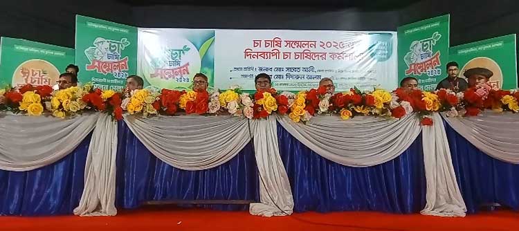 পঞ্চগড়ে চা চাষি সম্মেলন ২০২৫ ও দিন ব্যাপী চা চাষীদের কর্মশালা অনুষ্ঠিত হয়েছে। গতকাল শনিবার সকালে পঞ্চগড় সরকারি অডিটোরিয়াম চত্বরে এ কর্মশালা অনুষ্ঠিত হয়। উক্ত কর্মশালায় চা বাগান মালিক সমিতির সভাপতি মোঃ দিদারুল আলম এর সভাপতিত্বে প্রধান অতিথি হিসেবে উপস্থিত থেকে বক্তব্য দেন পঞ্চগড়ের জেলা প্রশাসক ও বিজ্ঞ জেলা ম্যাজিস্ট্রেট মোঃ সাবেত আলী। এ সময় অন্যদের মধ্যে বক্তব্য দেন বাংলাদেশ চা বোর্ড পঞ্চগড়ের উন্নয়ন কর্মকর্তা আমির হোসেন । চা চাষিদের মধ্যে বক্তব্য দেন মোঃ আবু হানিফ ও আনিসুজ্জামান প্রামাণিক। অনুষ্ঠানটি সঞ্চালনা করেন অ্যাডভোকেট আহসান হাবিব সরকার। উক্ত কর্মশালায় ৬০০ অধিক চা বাগান মালিক উপস্থিত ছিলেন। এর আগে সকালে পঞ্চগড় সরকারি অডিটোরিয়াম হতে একটি বর্ণাঢ্য শোভাযাত্রা বের হয়ে শহরের শেরেবাংলা পার্ক হয়ে অডিটোরিয়াম চত্বরে গিয়ে শেষ হয়।