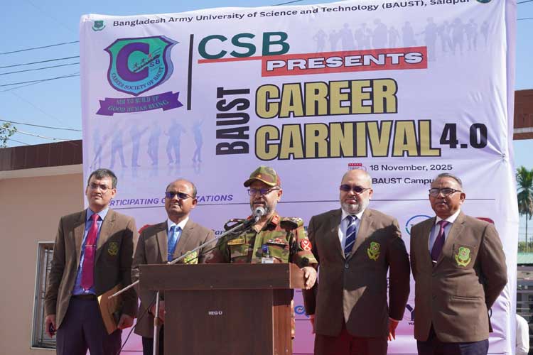 নীলফামারীর সৈয়দপুর সেনানিবাসে অবস্থিত বাংলাদেশ আর্মি বিজ্ঞান ও প্রযুক্তি বিশ^বিদ্যালয়ে (বাউস্টে) ক্যারিয়ার কার্নিভাল ৪.০ অনুষ্ঠিত হয়েছে। গতকাল মঙ্গলবার (১৮নভেম্বর) বিশ্ববিদ্যালয়ে চত্বরে ক্যারিয়ার সোসাইটি অব বাউস্ট চতুর্থ বারের মতো ক্যারিয়ার কার্নিভাল ৪.০ এর আয়োজন করে।