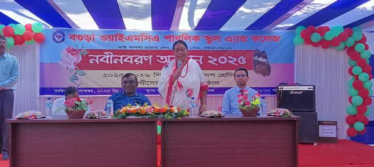 ক্যাপশন: বুধবার বগুড়া ওয়াইএমসিএ পাবলিক স্কুল এ্যান্ড কলেজের ২০২৫-২৬ শিক্ষাবর্ষের একাদশ শ্রেণির শিক্ষার্থীদের নবীনবরণ অনুষ্ঠানে প্রধান অতিথির বক্তব্য রাখেন সংস্থার সভাপতি মিস অর্পনা প্রামানিক।