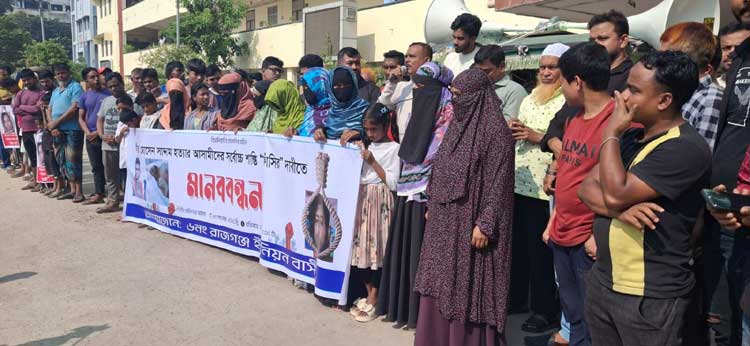ছাত্রদল নেতা হত্যার বিচারের দাবিতে স্বজন ও এলাকাবাসীর মানববন্ধন