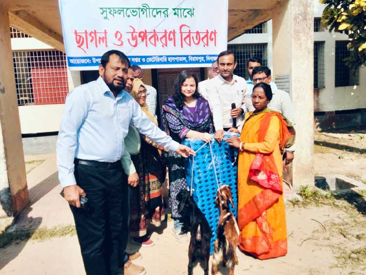 সমতল ভ’মিতে বসবাসরত অনগ্রসর ক্ষুদ্র নৃ-গোষ্ঠির আর্থ-সামাজিক ও জীবন মানোন্নয়নের লক্ষ্যে সমন্বিত প্রাণিসম্পদ উন্নয়ন প্রকল্পের আওতায় বিরামপুর উপজেলার পৌর এলাকা ও ৭টি ইউনিয়নের ১৮৭টি ক্ষুদ্র নৃ-গোষ্ঠি পরিবারের মাঝে ২টি করে ছাগল, ছাগলের ঘর নির্মাণের জন্য আসবাব ও ২৫ কেজি করে খাদ্য বিতরণ করা হয়েছে।