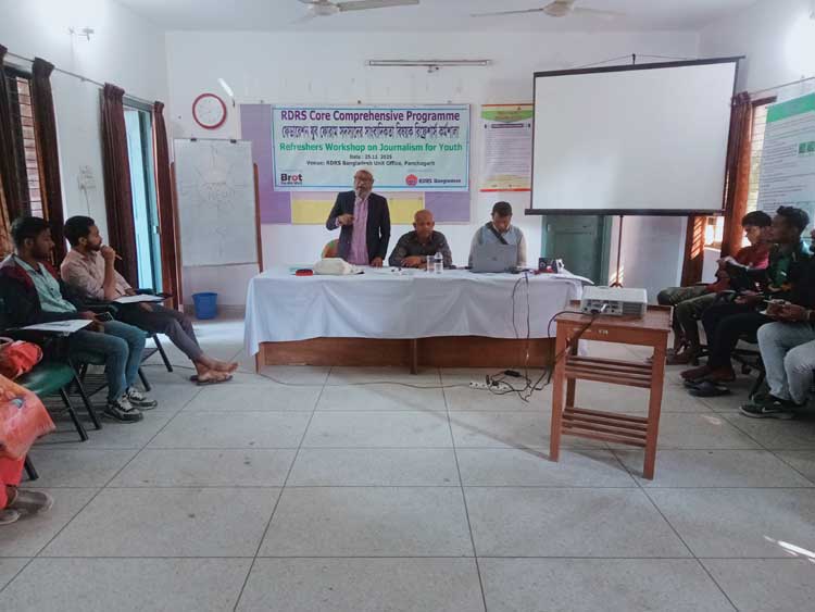 পঞ্চগড়ে আরডিআরএস কোর কম্প্রিহেনসিভ প্রোগ্রাম ফেডারেশন যুব ফোরাম সদস্যদের সাংবাদিকতা বিষয়ক রিফ্রেশার্স কর্মশালা অনুষ্ঠিত হয়েছে। আজ মঙ্গলবার সকালে আরডিআরএস বাংলাদেশ ইউনিট অফিস পঞ্চগড়ের হলরুমে দিনব্যাপী এ কর্মশালা অনুষ্ঠিত হয়। উক্ত প্রশিক্ষণ কর্মশালায় প্রশিক্ষক হিসেবে উপস্থিত ছিলেন সাংবাদিক শহিদুল ইসলাম শহীদ, সাংবাদিক
