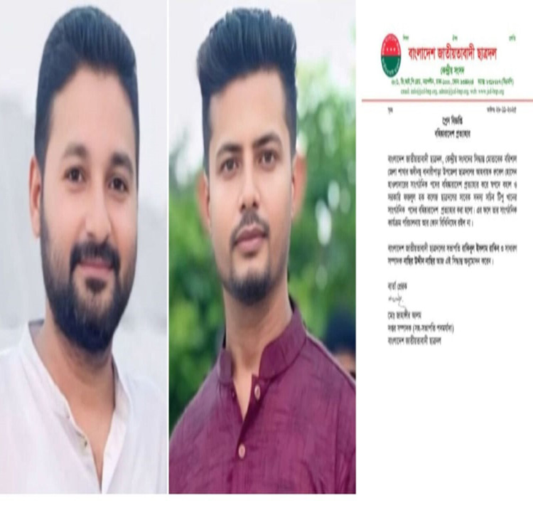 বরিশালের বানারীপাড়া উপজেলা ছাত্রদলের আহবায়ক রুবেল হোসেন হাওলাদার ও উপজেলার চাখার সরকারি ফজলুল হক কলেজ শাখা ছাত্রদলের সাবেক সদস্য সচিব টিপু খানের