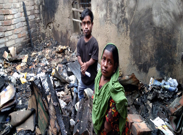 শারীরিক প্রতিবন্দী সুজন হোসেন জানান, সে দীর্ঘদিন যাবত বাড়ির নিকট জিএম ফিড মিলের পাশে ইটের দেয়ালে টিনসেডের দোকান ঘর ভাড়া নিয়ে মুদি দোকানে বেচাকেনা করে মায়ের সাথে থেকে জীবিকা নির্বাহ করতো। গত রোববার দিবাগত রাতে কেবা কারা ওই দোকান ঘরে অগ্নিসংযোগ করলে দোকান ঘরে রাখা ড্রিল মেশিন, ফ্রিজ, চাল ডাল, সিগারেট, সাবানসহ প্রায় আড়াই লক্ষাধিক টাকার মালামাল পুড়ে ভষ্মিভ’ত হয়।