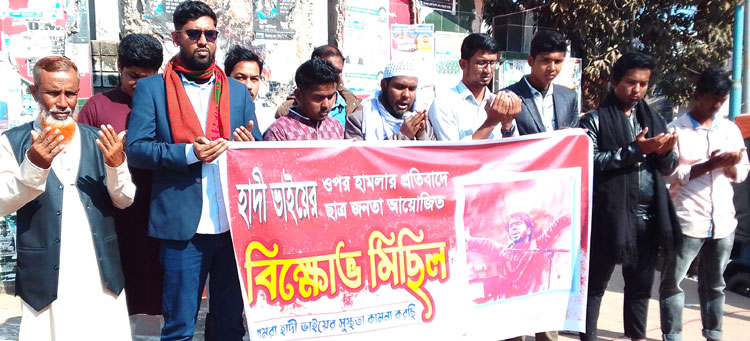 বেলা সাড়ে ১১টায় বিরামপুর ঢাকামোড়ে সন্ত্রাস ও দূর্ণীতি নির্মূলের দাবিতে বিক্ষোভ ও হাদির সুস্থ্যতা কামনা করে দোয়া অনুষ্ঠানে দোয়া পরিচালনা করেন, হাফেজ নূর মোহাম্মদ। এসময় উপস্থিত ছিলেন, ২৪এর জুলাই আন্দোলনের ছাত্র নেতা ফরিদুল ইসলাম, তোজাম্মেল হক, মোসাব্বির অর্ক, আবুল কালাম আজাদ, মারুফ মোরশেদ প্রমূখ।