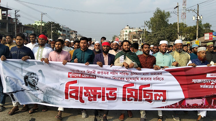 শহীদ শরীফ ওসমান হাদির হত্যার প্রতিবাদে শাজাহানপুরে বিক্ষোভ মিছিল ও সমাবেশ