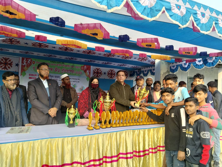 উপজেলা মাধ্যমিক শিক্ষা অফিসার মাহবুবুল হোসেন বিজয়ীদের মাঝে পুরস্কার বিতরণ করেন। এ সময় উপস্থিত ছিলেন সহকারী মাধ্যমিক শিক্ষা অফিসার জাহাঙ্গীর হাসান, একাডেমিক সুপারভাইজার রুকাইয়া পারভীন, অধ্যক্ষ শফিকুল ইসলামসহ বিভিন্ন শিক্ষা প্রতিষ্ঠানের শিক্ষক ও ক্রীড়া সংশ্লিষ্ট ব্যক্তিবর্গ।