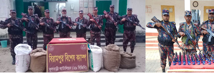 ফুলবাড়ী ২৯ বিজিবি সীমান্তে পৃথক পৃথক দুটি অভিযান চালিয়ে ৮৮লক্ষ ৮ হাজার ৫শত টাকার মাদক আটক করেন।