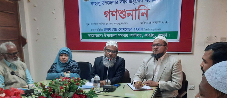 বুধবার বগুড়ার কাহালু উপজেলা সমবায় অফিসের আয়োজনে এক গণ শুনানি অনুষ্ঠানে প্রধান অতিথির বক্তব্য রাখেন রাজশাহী বিভাগীয় যুগ্ম নিবন্ধক মো. মোখলেছুর রহমান। প্রতিনিধিঃ