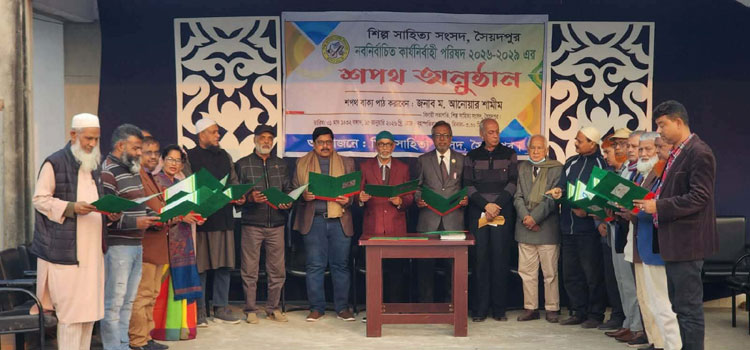 নীলফামারীর সৈয়দপুর শহরের প্রাচীনতম এবং ঐতিহ্যবাহী সাহিত্য ও সাংস্কৃতিক সংগঠন সৈয়দপুর শিল্প সাহিত্য সংসদের তিন বছরমেয়াদী নবনির্বাচিত কার্যনির্বাহী পরিষদের (২০২৬-২০২৯ইং) শপথ গ্রহন অনুষ্ঠান অনুষ্ঠিত হয়েছে। গতকাল বৃহস্পতিবার (১৫ জানুয়ারি) বিকেল তিনটায় শহরের শেরে বাংলা সড়কে সংঠনের নিজস্ব ভবনে ওই শপথ গ্রহন অনুষ্ঠানের আয়োজন করা হয়।