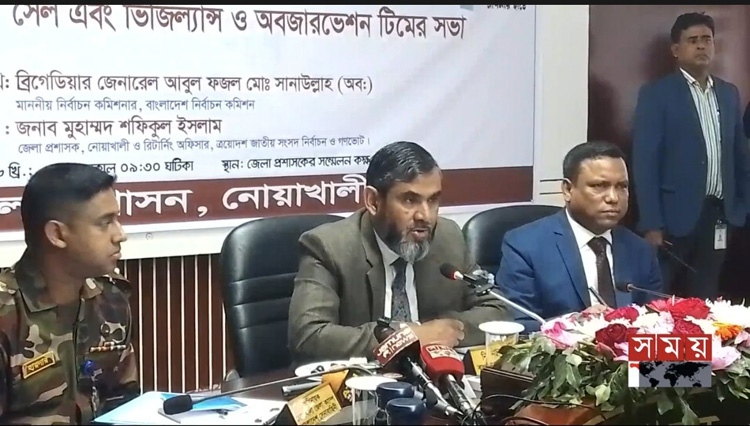 মঙ্গলবার (২৭ জানুয়ারি) সকালে ত্রয়োদশ জাতীয় সংসদ নির্বাচন ও গণভোটকে সামনে রেখে জেলা প্রশাসকের কার্যালয়ের সম্মেলন কক্ষে নোয়াখালীতে আইন শৃঙ্খলা রক্ষাকারী সেল, ভিজিল্যান্স ও অবজারভেশন টিমের সভায় প্রধান অতিথির বক্তব্যে তিনি এসব কথা বলেন।