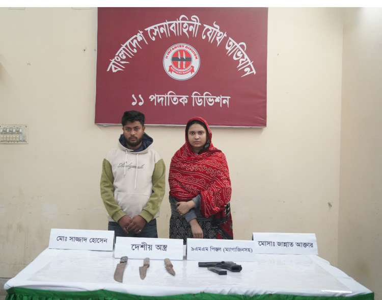 বগুড়ায় ডোবা থেকে বিদেশি পিস্তল উদ্ধার, স্বামী-স্ত্রী গ্রেপ্তার