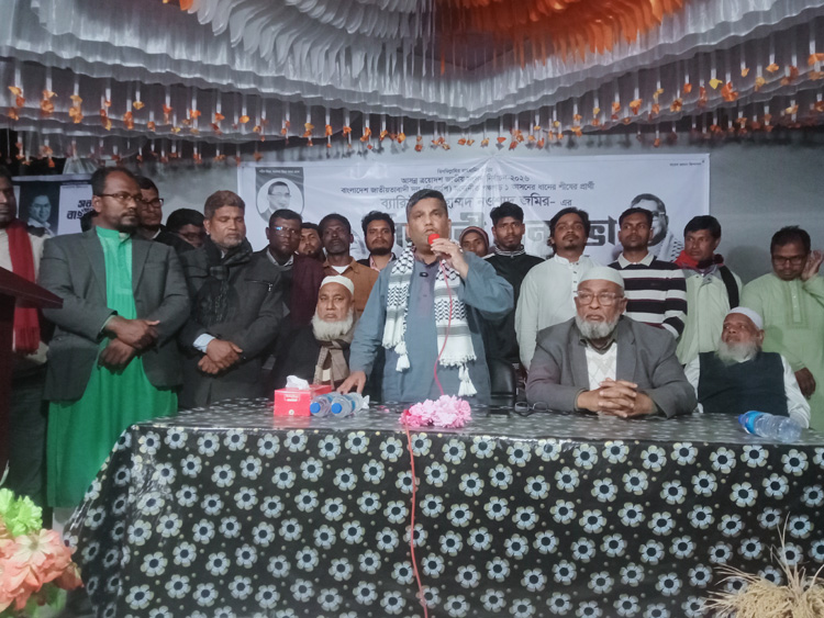 ব্যারিস্টার মুহাম্মদ নওশাদ জমির -এর নির্বাচনী জনসভা অনুষ্ঠিত হয়েছে। বৃহস্পতিবার সন্ধ্যায় ৯ নং মাগুড়া ইউনিয়ন বিএনপি, সকল অঙ্গ ও সহযোগী সংগঠন এর আয়োজনে সদর উপজেলার মাগুড়া ইউনিয়নের দলুয়া বাজার এলাকায় এ জনসভা অনুষ্ঠিত হয়। উক্ত নির্বাচনী জনসভায় জেলা কৃষক দল পঞ্চগড় এর সাবেক সভাপতি ও মাগুড়া ইউনিয়ন বিএনপি'র সভাপতি এম এ করিম মন্ডলের সভাপতিত্বে প্রধান অতিথির বক্তব্য দেন পঞ্চগড় ১ আসনের ধানের শীষের মনোনীত প্রার্থী ও বাংলাদেশ জাতীয়তাবাদী দল (বিএনপি) কেন্দ্রীয় কমিটির আন্তর্জাতিক সম্পর্ক বিষয়ক সম্পাদক ব্যারিস্টার মুহাম্মদ নওশাদ জমির। অন্যদের মধ্যে বক্তব্য দেন পঞ্চগড় সদর উপজেলা বিএনপি'র সভাপতি আবু দাউদ প্রধান । ওলামা দলের জেলা আহ্বায়ক মুফতি মহিবুর রহমান, যুবদলের আহ্বায়ক আবু জাহিদ প্রধান শাহিন প্রমুখ। এ সময় যুব দলের সদস্য সচিব মজিবর রহমানসহ ইউনিয়ন বিএনপি' ও সহযোগী সংগঠনের সকল নেতৃবৃন্দ উপস্থিত ছিলেন।