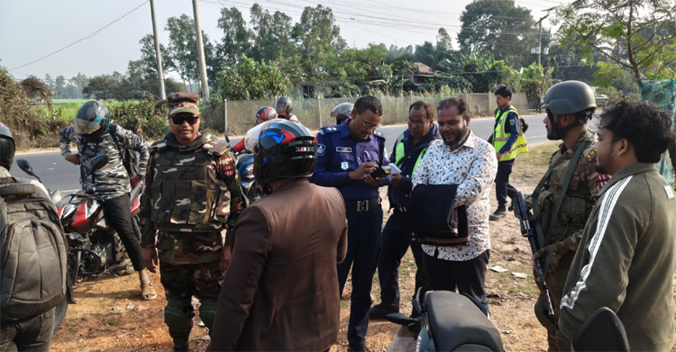 নন্দীগ্রামে হাইওয়ে পুলিশ–সেনাবাহিনীর যৌথ অভিযানে ৩টি যানবাহনে মামলা