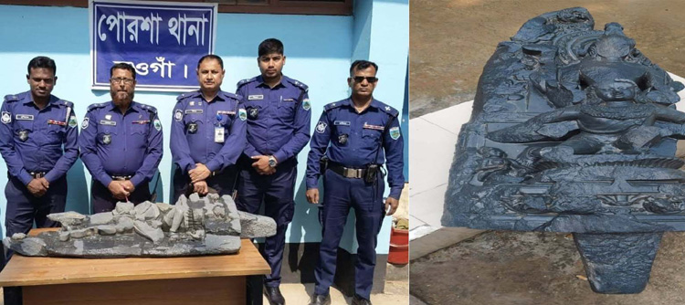 পোরশায় ১৩৭কেজি ওজনের কষ্টিপাথরের মূর্তি উদ্ধার